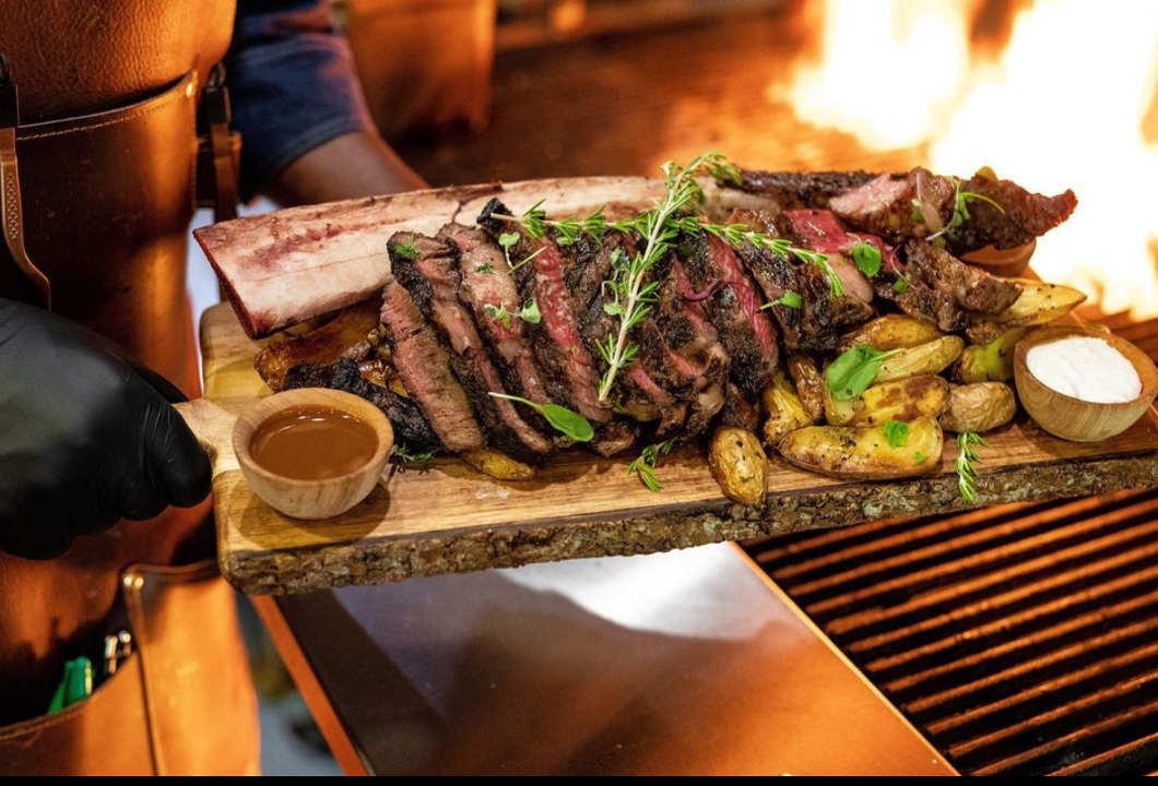 creekstone bone-in rib-eye | chef q's house spices | herb roasted potatoes | house steak sauce | creamy horseradish