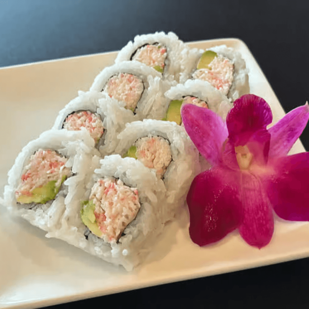 8-Piece rolls with rice outside. Crab mixed with avocado