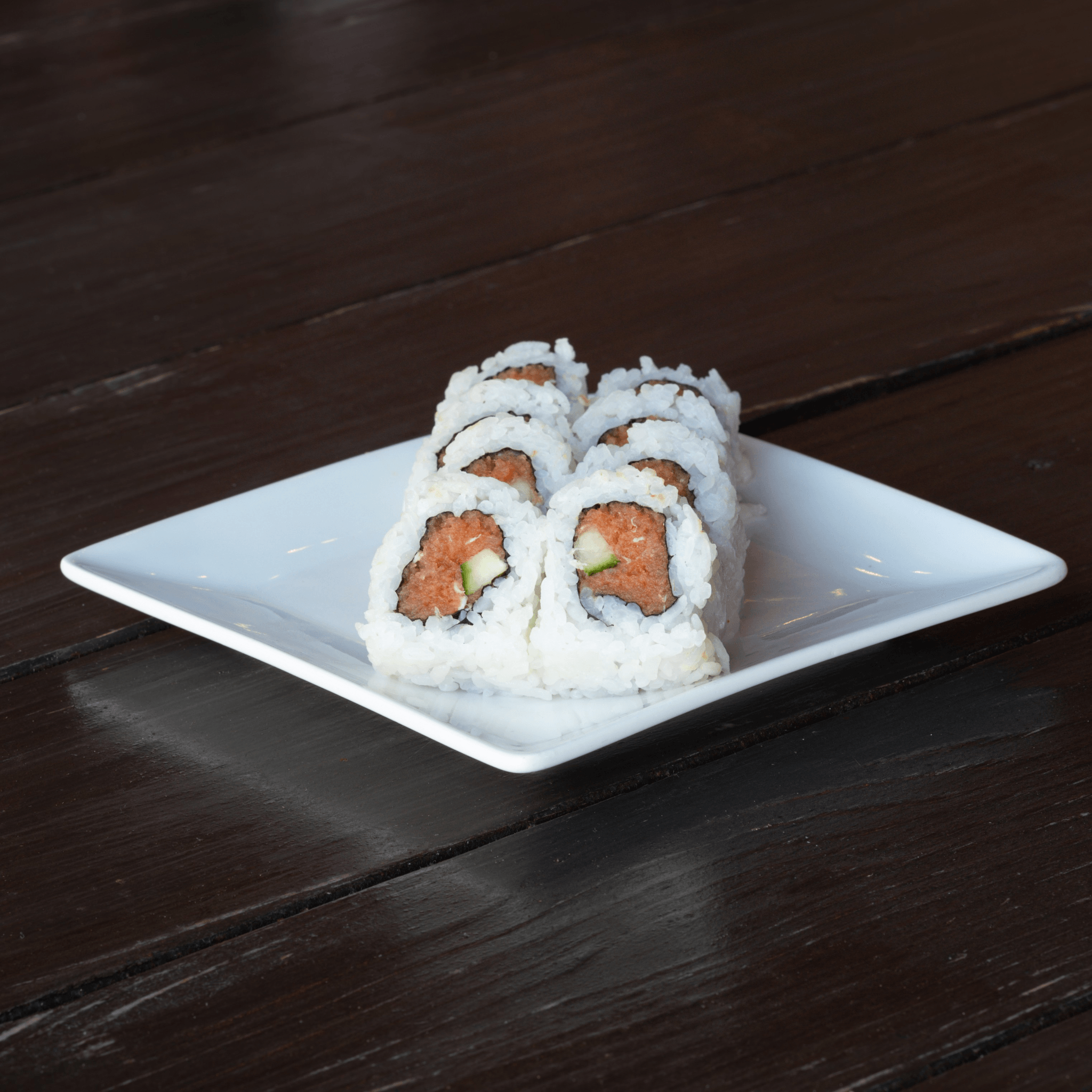 Fresh tuna on top of a spicy tuna & cucumber. Drizzled with spicy mayo & chili oil