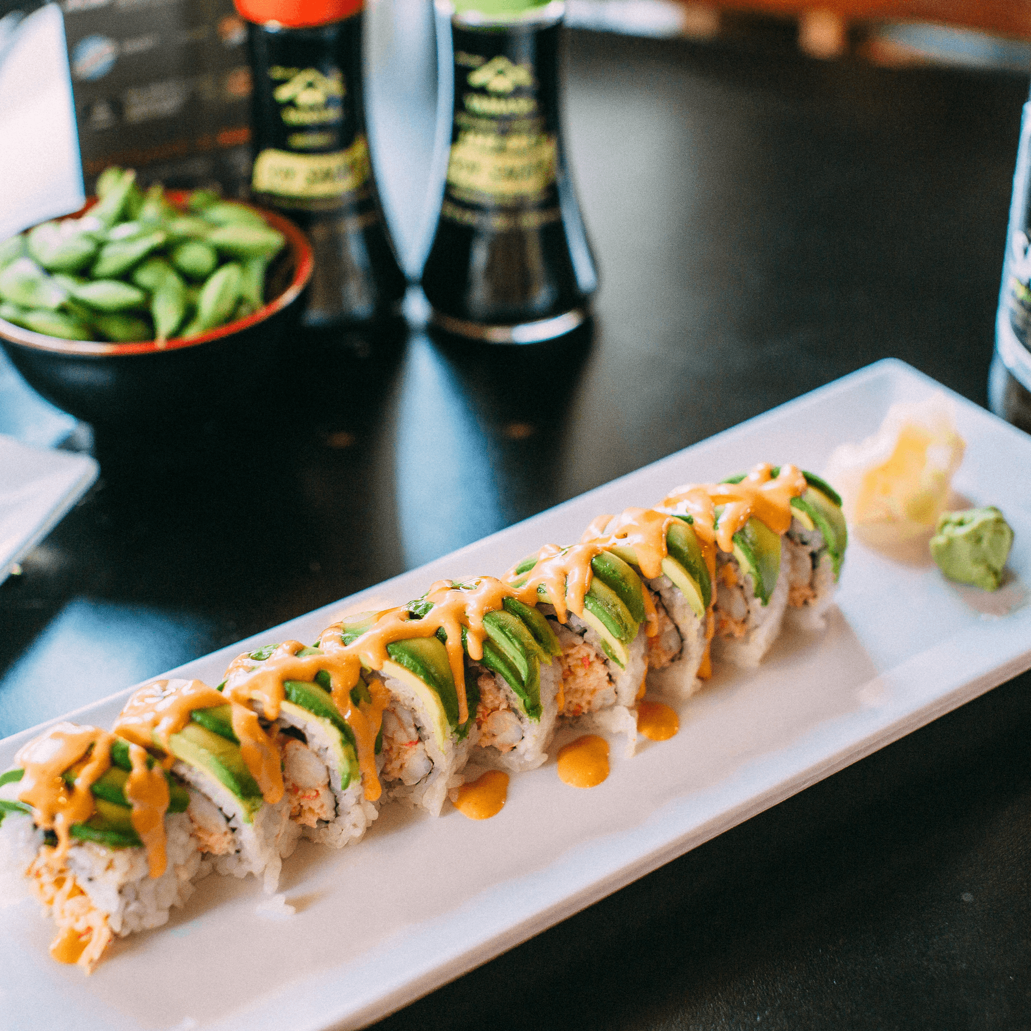 Fresh avocado on top of spicy crab mix & ebi shrimp. Drizzled with spicy mayo & chili oil